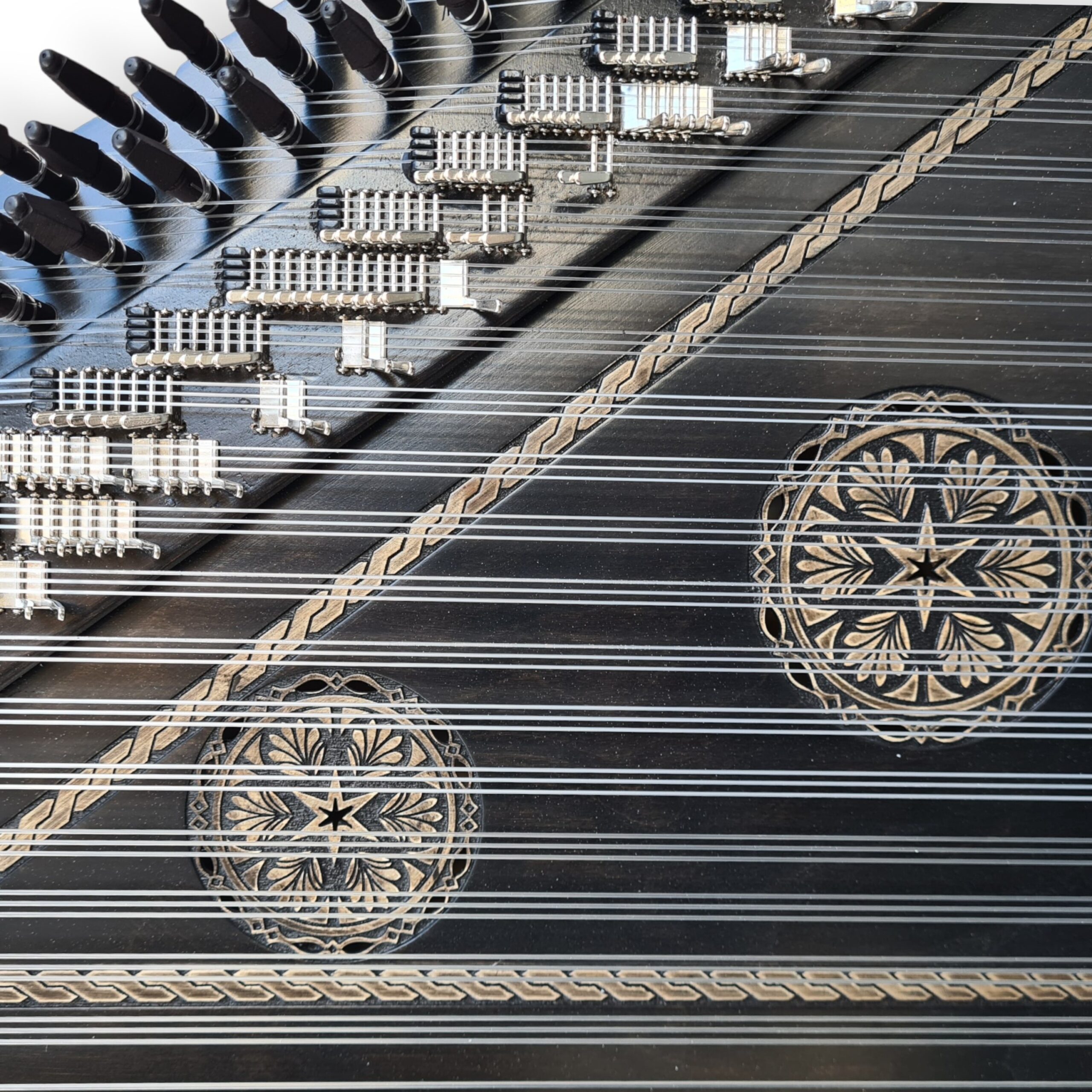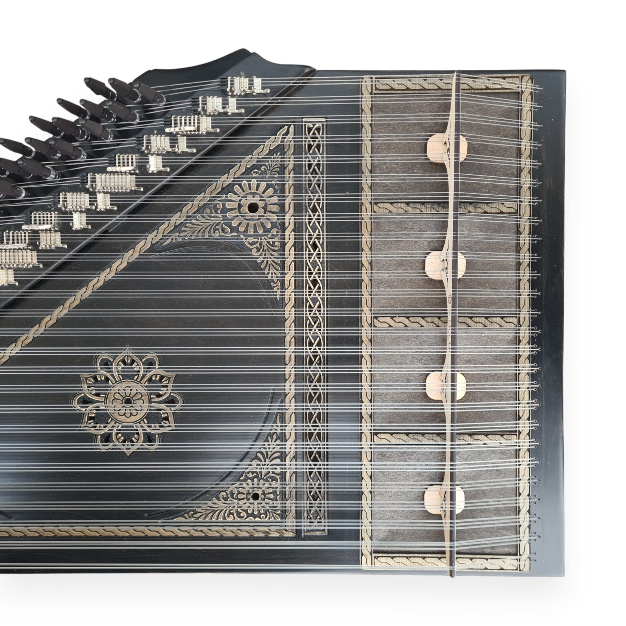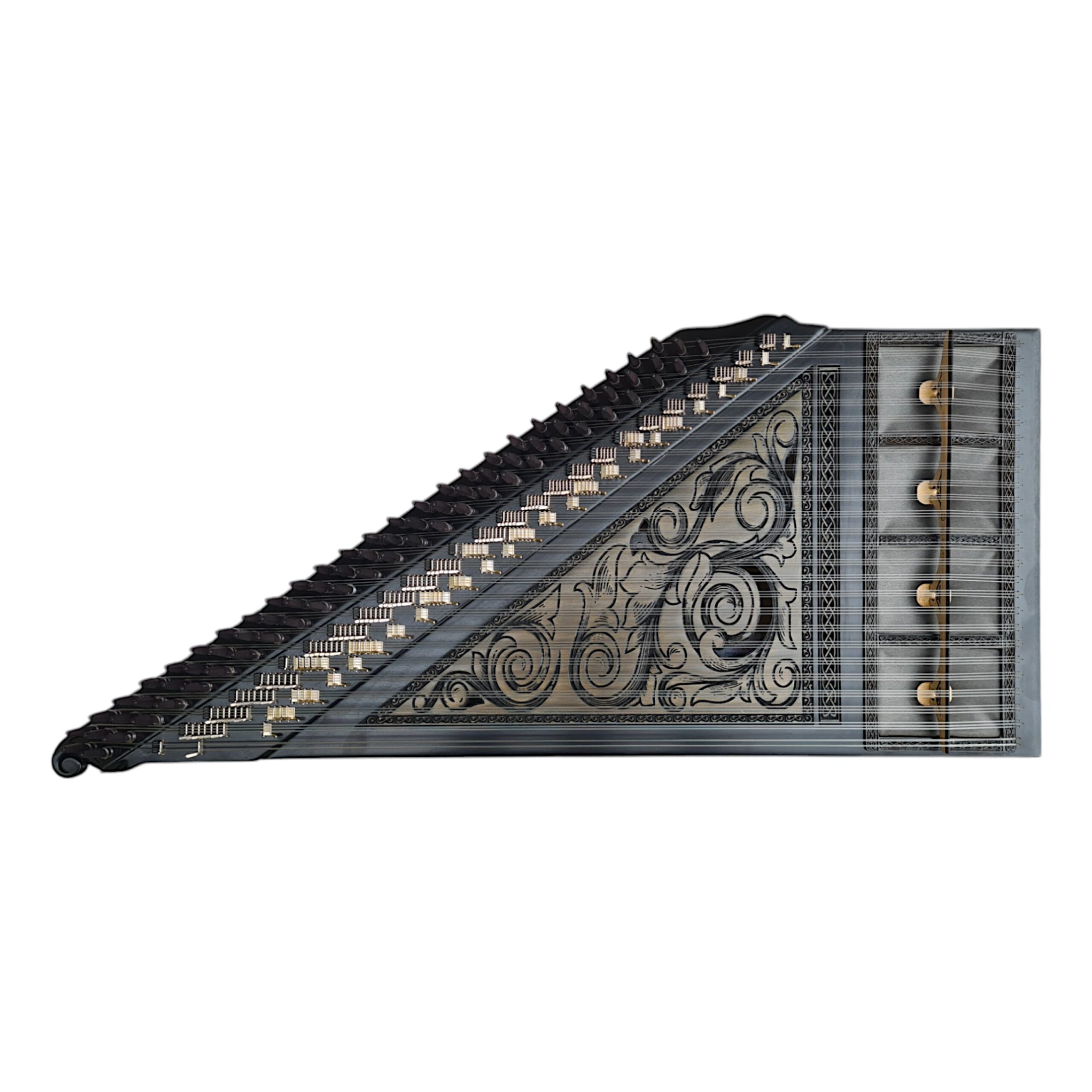 Kanun huş veya çınar ağacı üzerine renklendirme yapılarak imal edilmiştir.